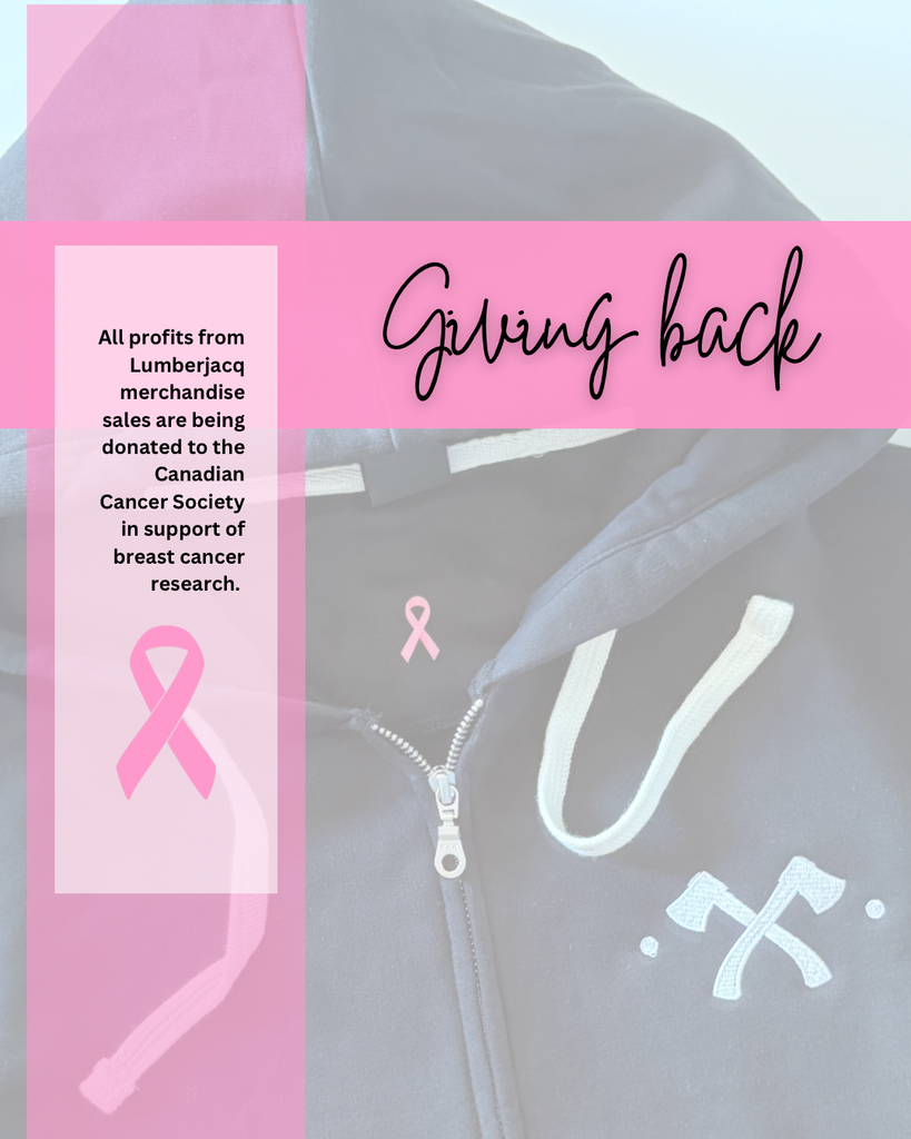 GREAT NEWS! All profits from Lumberjacq merch sales go to the Canadian Cancer Society in support of breast cancer research.