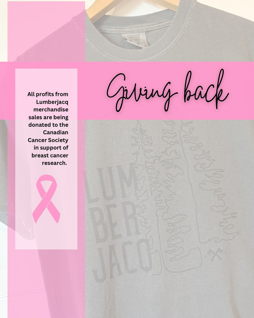 GREAT NEWS! All profits from Lumberjacq merch sales go to the Canadian Cancer Society in support of breast cancer research.